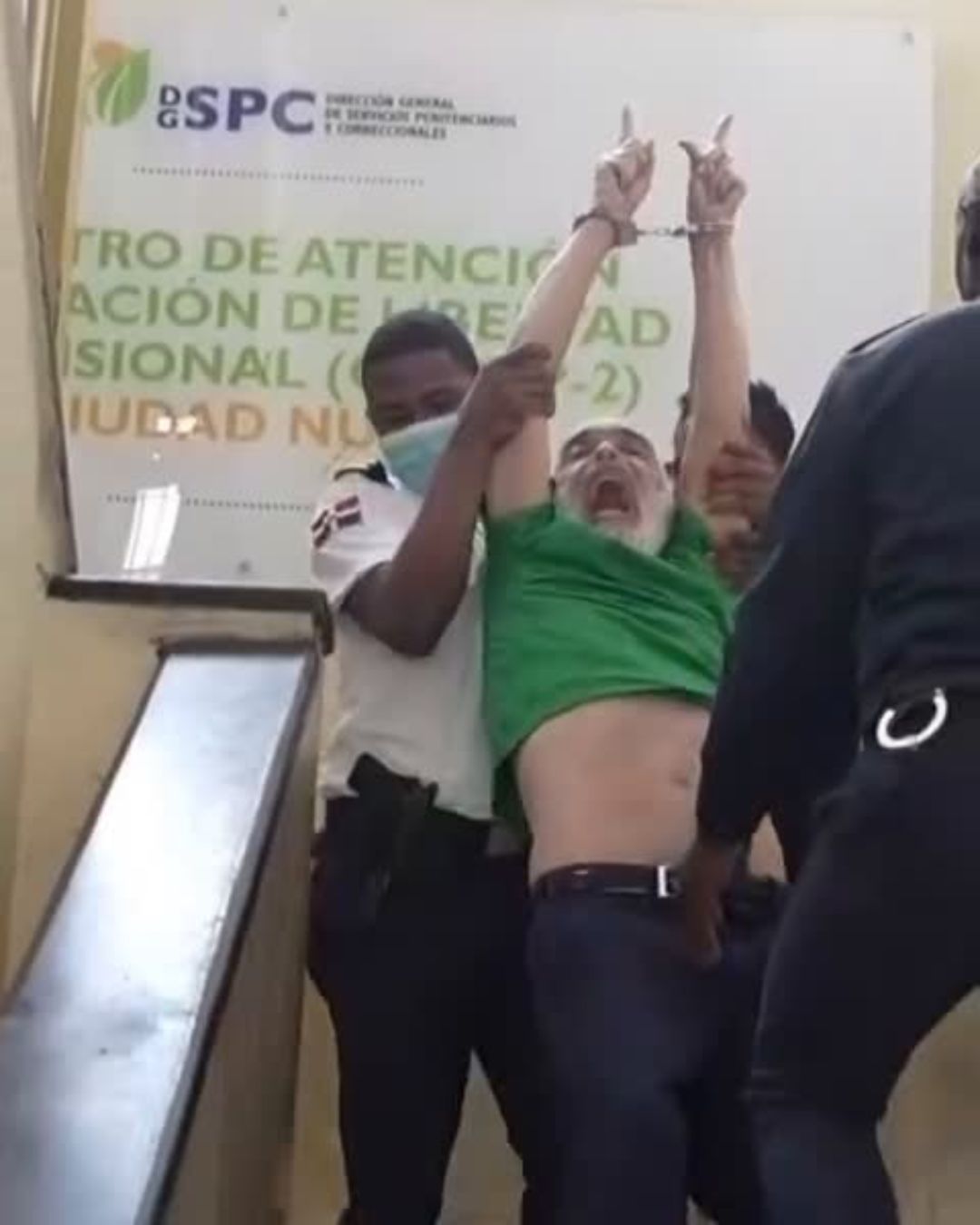 El comunicador Ángel Martínez fue captado por las cámaras al salir de la sala de audiencias del Palacio de Justicia, gritando con fuerza: “¡Libertad, libertad!”.