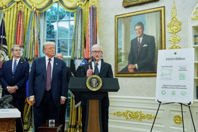 Apple anunciará hoy un compromiso de 100 mil millones de dólares enfocado en aumentar la manufactura dentro de Estados Unidos, según informó un funcionario de la Casa Blanca, que solicitó mantener el anonimato.