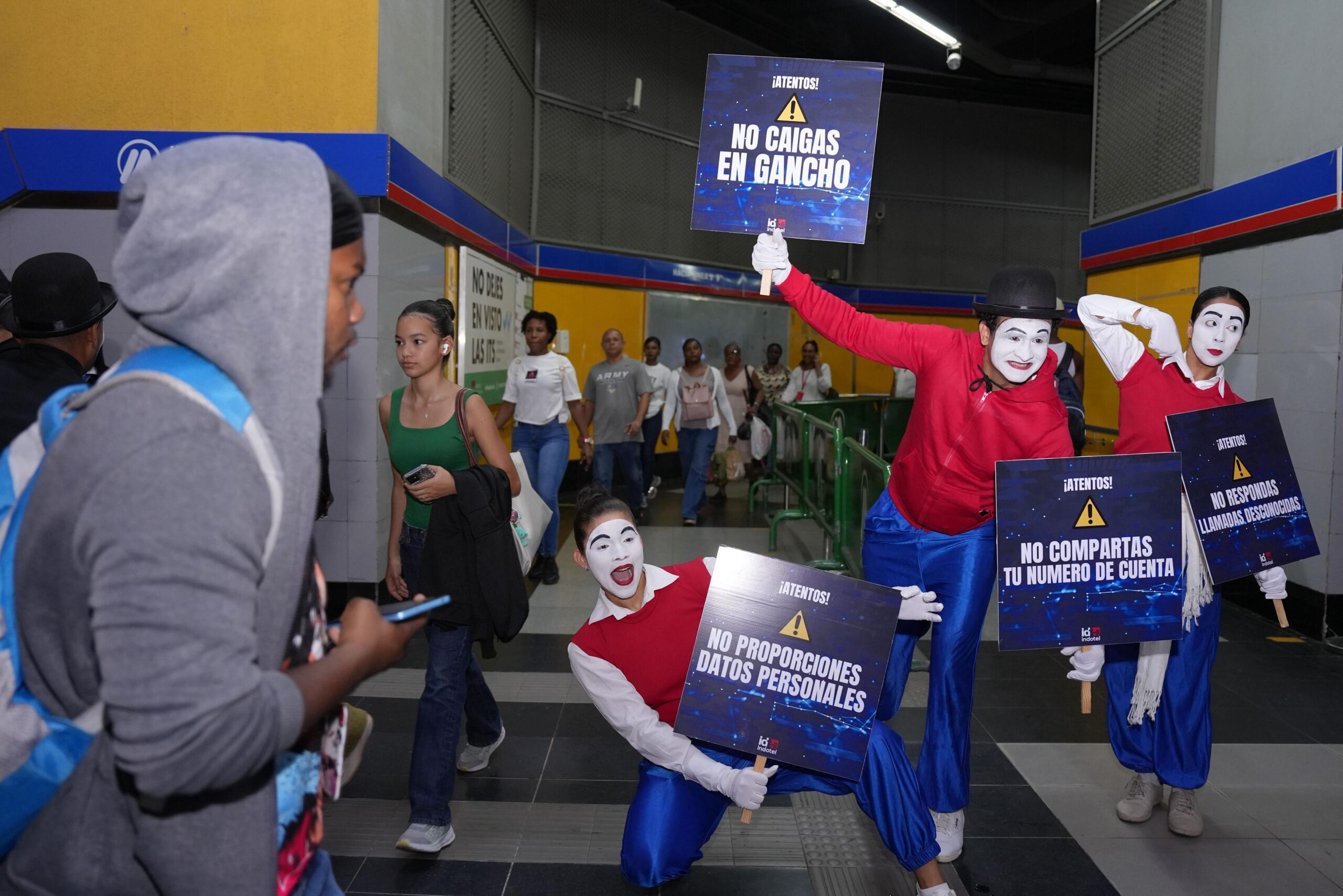 Explica la institución que una de las acciones más distintivas de la campaña es la presencia de mimos en estaciones como Juan Pablo Duarte, quienes representan de forma artística y educativa las situaciones más frecuentes de fraude.